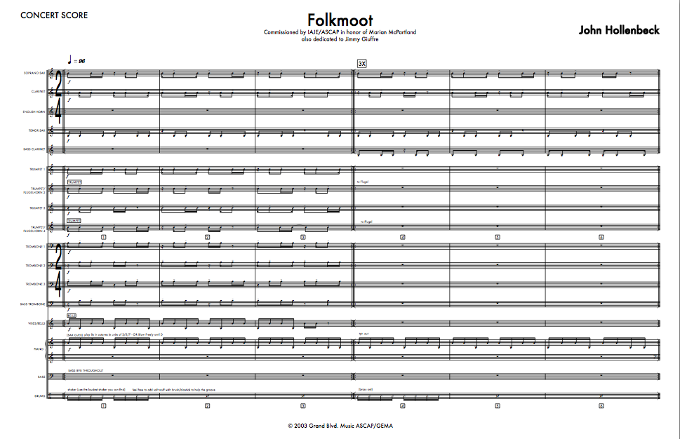 Commissioned by IAJE/ASCAP in honor of Marian McPartland 2002; also dedicated to Jimmy Giuffre.